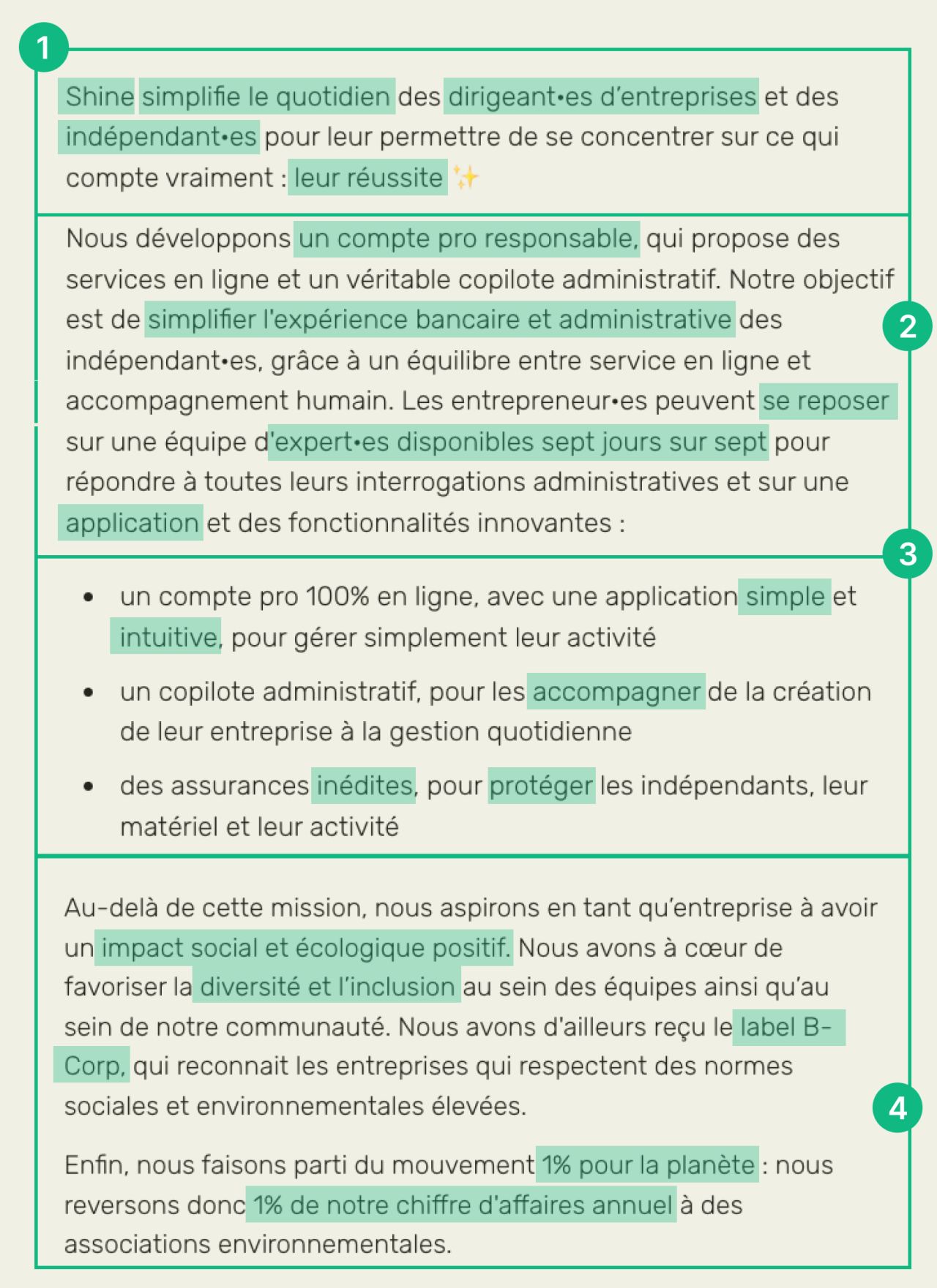 Voici l'exemple de Shine orienté autour de son "pourquoi" 👇